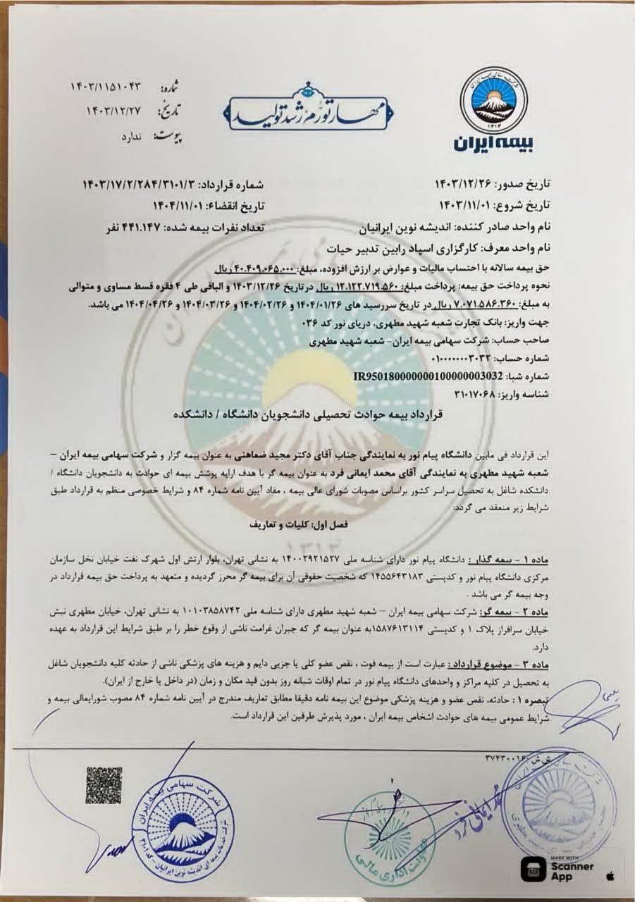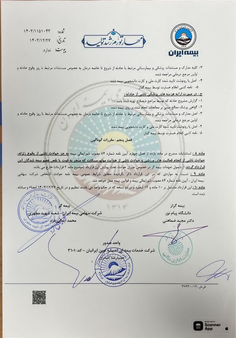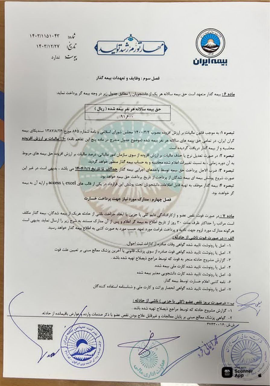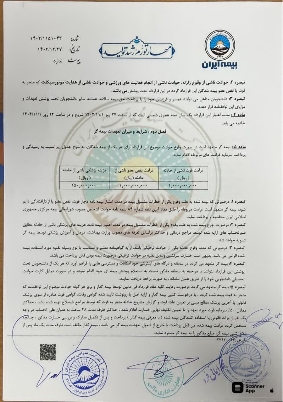 قرارداد بیمه حوادث تحصیلی دانشجویان