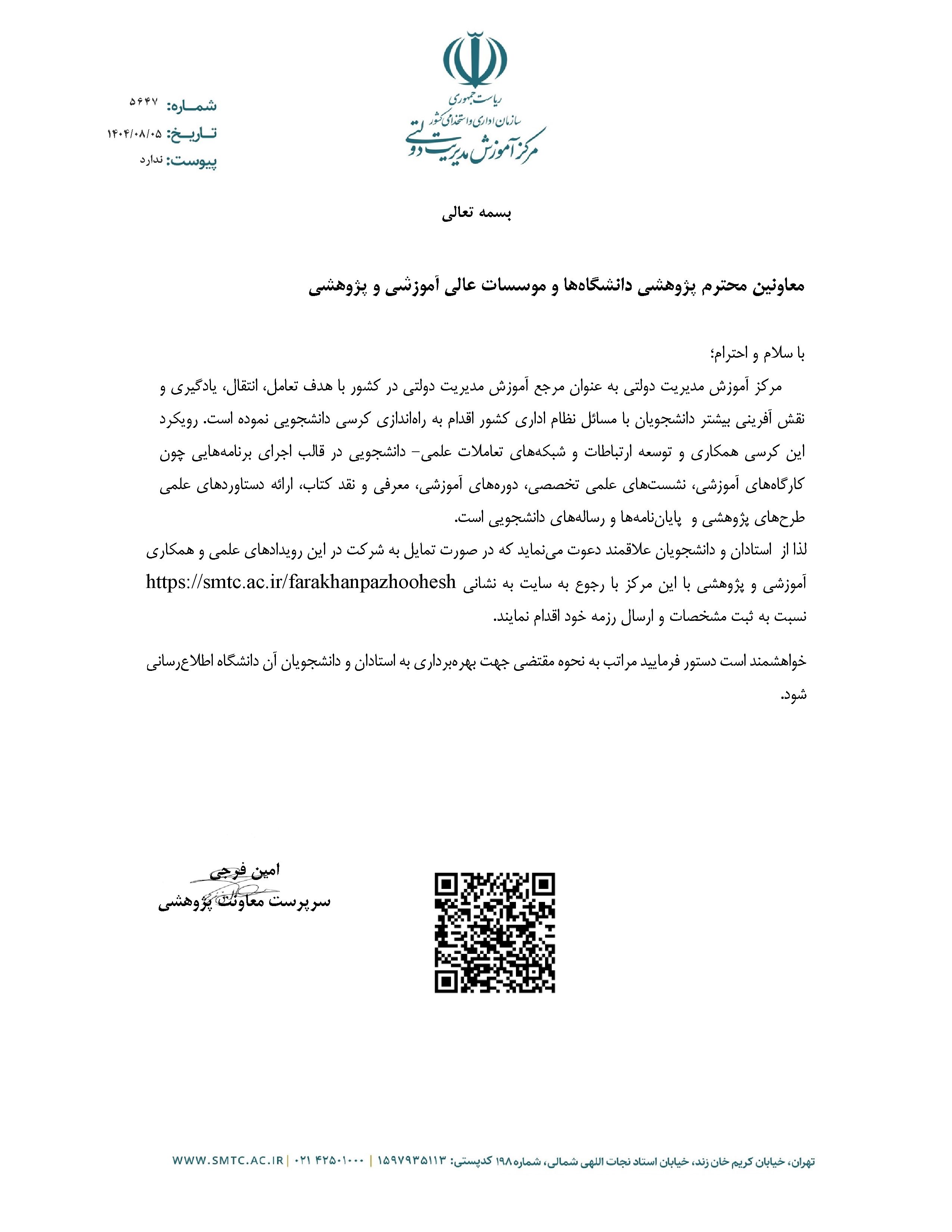 اطلاع رسانی جهت همکاری آموزشی و پژوهشی با مرکز آموزش مدیریت دولتی