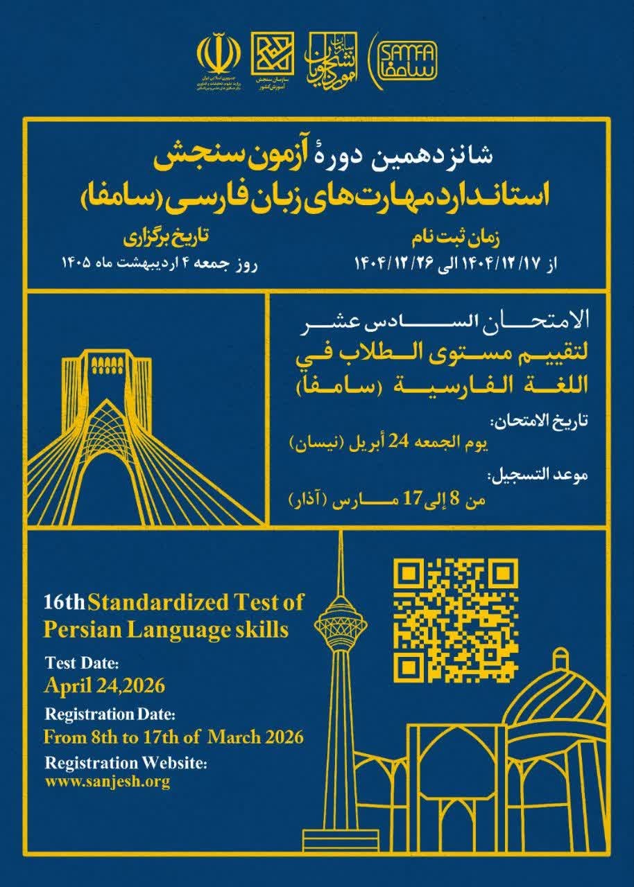 برگزاری "شانزدهمین دوره آزمون سنجش استاندارد مهارت های زبان فارسی (سامفا)"